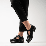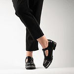 Nuestro Zapato color negro es 100% de Cuero y Chileno. Su plataforma ultra liviana mide 3.5 cm.