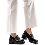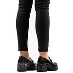 Nuestro Zapato estilo mocasín color negro es 100% de Cuero y Chileno. Su plataforma ultra liviana mide 5.5 cm.