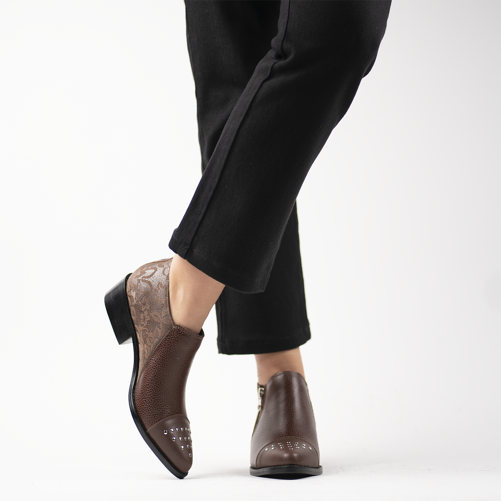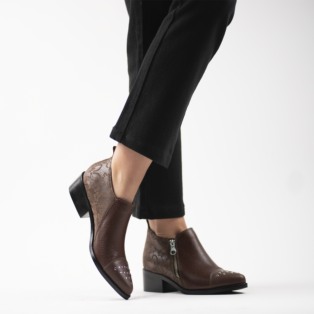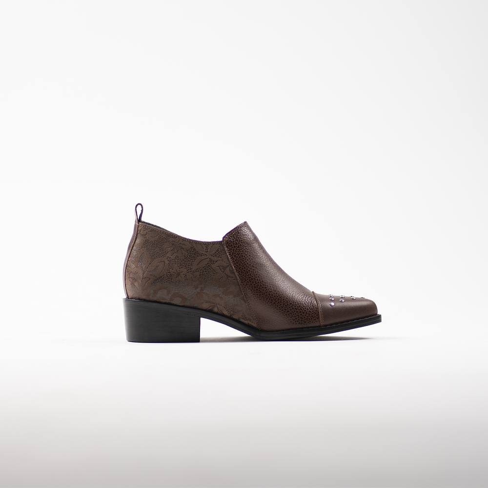 Nuestro botines hechos a mano color café mocha es 100% de Cuero y Chileno. Media del Taco 3,5 cm.